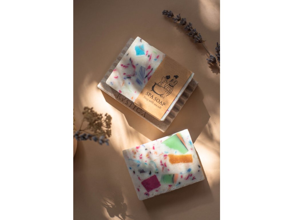 Mydlo s morskou soľou a éterickými olejmi z mäty a levandule. Mydlo na jemný peeling s morskou soľou a éterickými olejmi mäty a levandule. Spa mydlo tonizuje, čistí a osviežuje pokožku. Medzi základné energetické čističe patrí soľ a voda. Soľ je prvok zeme. Doprajte si spa zážitok vo vlastnej kúpeľni. Odporúča sa na každodenné umývanie rúk. Vďaka obsahu soli je toto mydlo výrazne tvrdšie ako ostatné naše mydlá. Nezmäkne ani sa rýchlo neminie a ruky sú po použití citeľne osviežené.